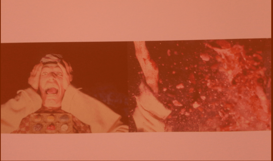 One of the gruesome of these deleted scenes is the original version of Belloq’s head exploding. In the theatrical cut the blood and gore is heavily blurred by the flames shooting out of the Ark, but in this one the flames are no longer obscuring the graphics of it all. While there was no video per say, the Will McCrabb Twitter page unleashed a pair of the shots to the public on November 14 2013. Take a look:
